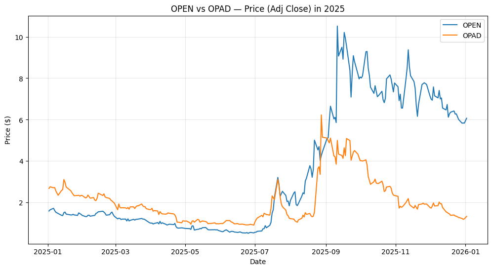 • OPEN strongly outperformed OPAD in 2025. OPEN more than tripled in price, while OPAD lost over half its value.